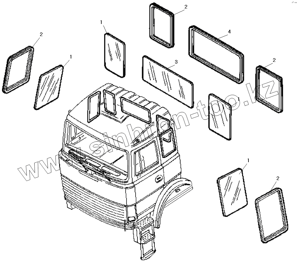 Каталог запасных частей к технике: УралАЗ УРАЛ-532301. Стекла задка