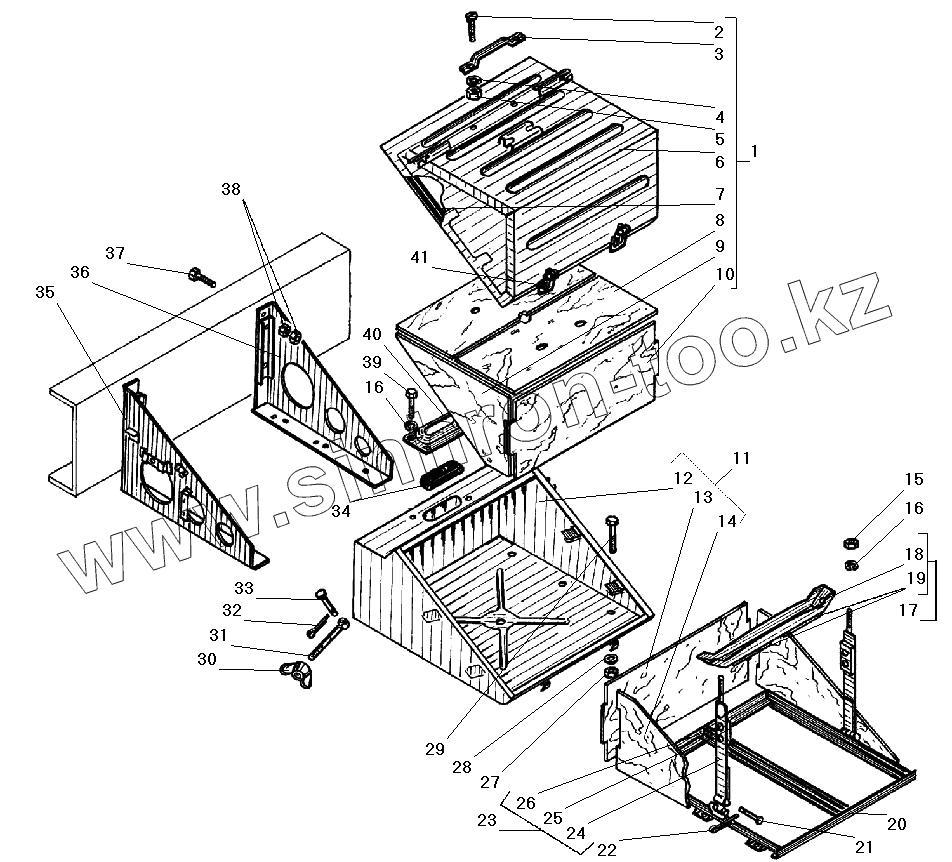 Каталог запасных частей к технике: УралАЗ УРАЛ-532301. Установка контейнера аккумуляторных батарей