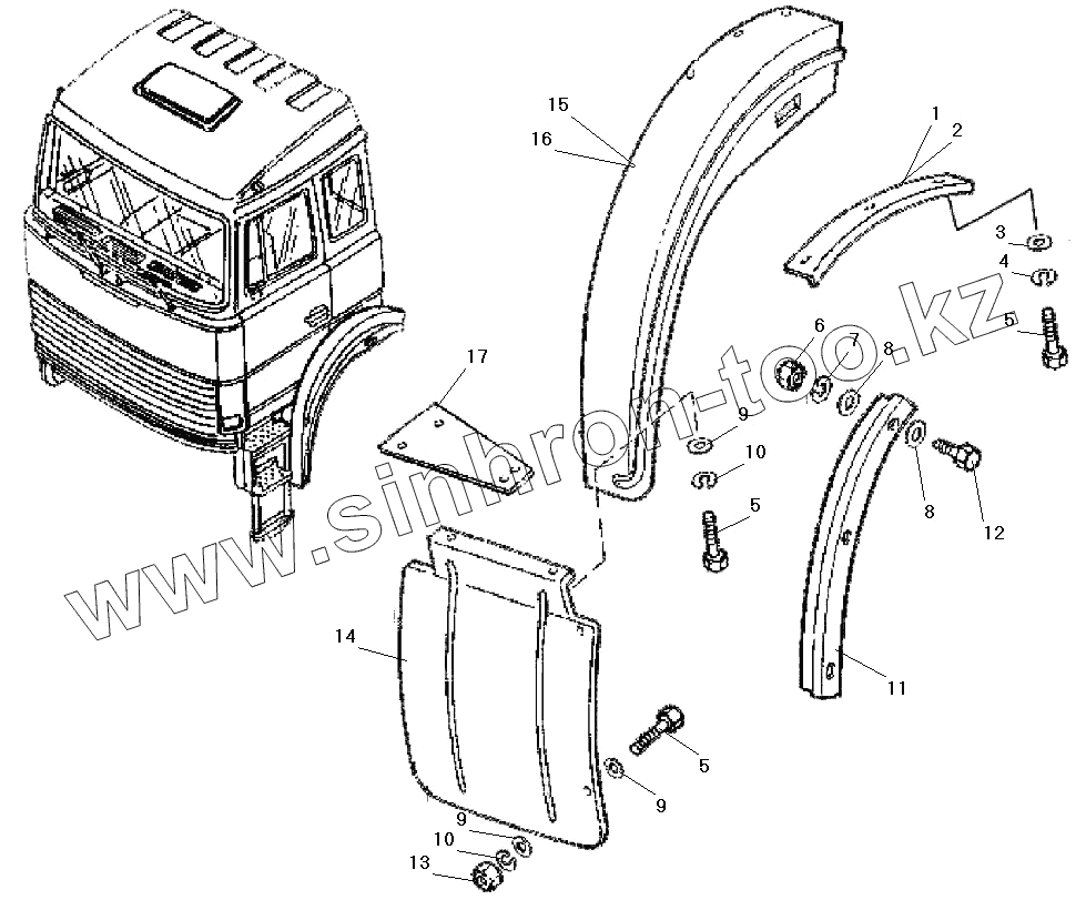 Каталог запасных частей к технике: УралАЗ УРАЛ-532301. Установка крыльев и брызговиков