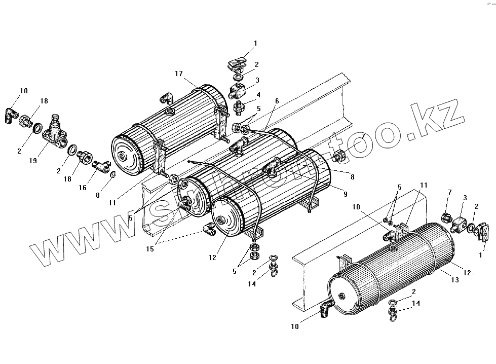 Каталог запасных частей к технике: УралАЗ УРАЛ-532301. Установка воздушных баллонов