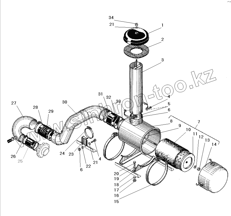 Каталог запасных частей к технике: УралАЗ УРАЛ-532301. Воздуховод с воздушным фильтром