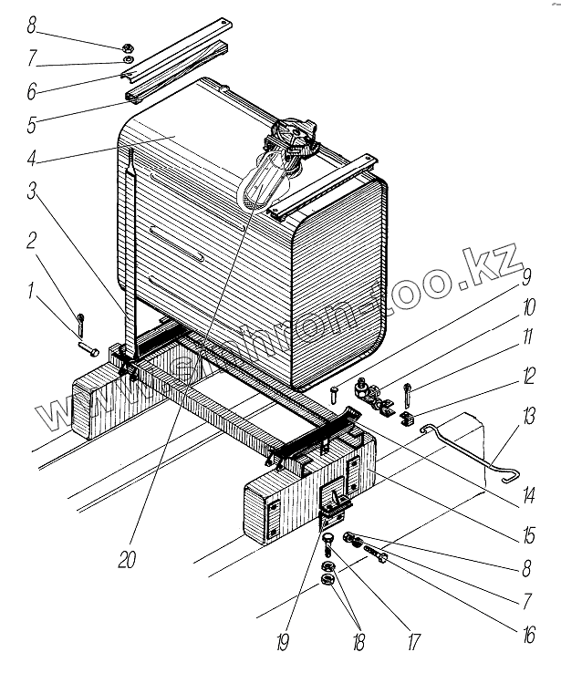 Каталог запасных частей к технике: УралАЗ УРАЛ-532361. Дополнительный топливный бак для автомобилей Урал 542301