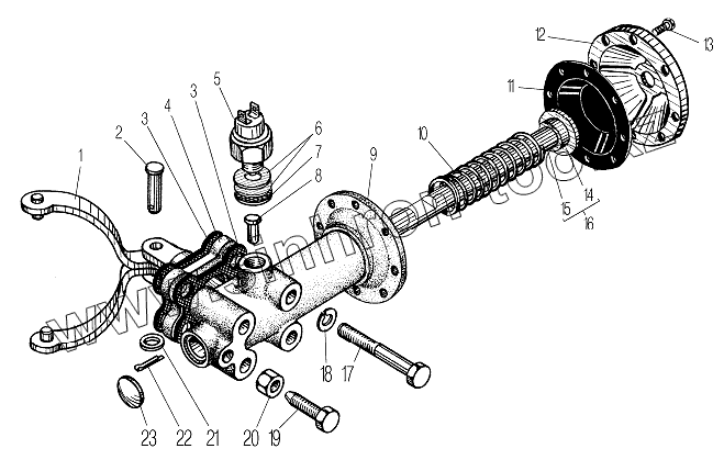 Каталог запасных частей к технике: УралАЗ УРАЛ-532361. Механизм включения блокировки дифференциала