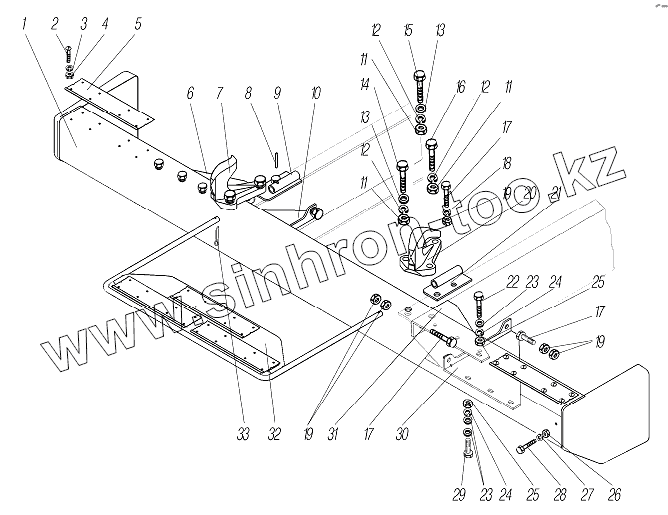 Каталог запасных частей к технике: УралАЗ УРАЛ-532361. Передний буфер и буксирные крюки