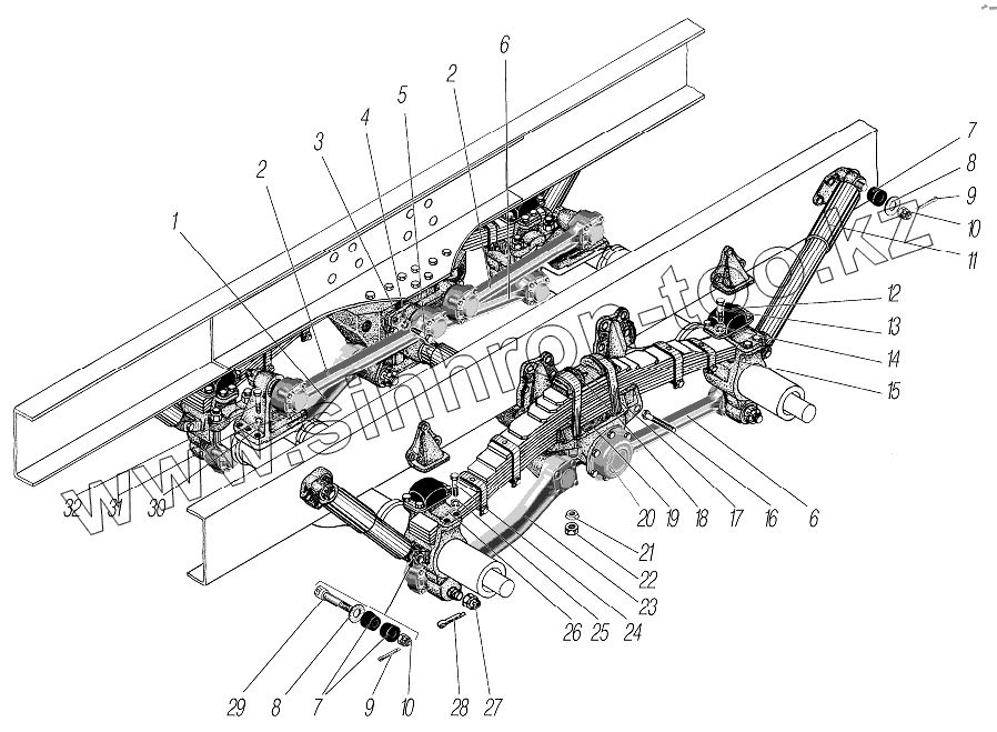 Каталог запасных частей к технике: УралАЗ УРАЛ-532361. Передняя подвеска