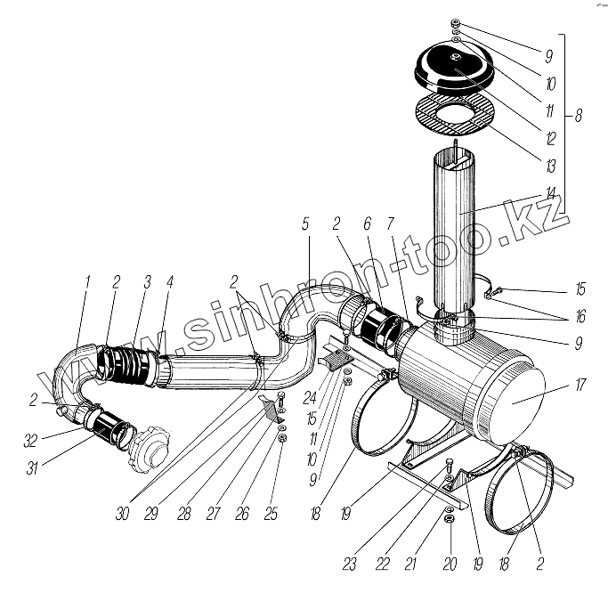 Каталог запасных частей к технике: УралАЗ УРАЛ-532361. Система питания воздухом
