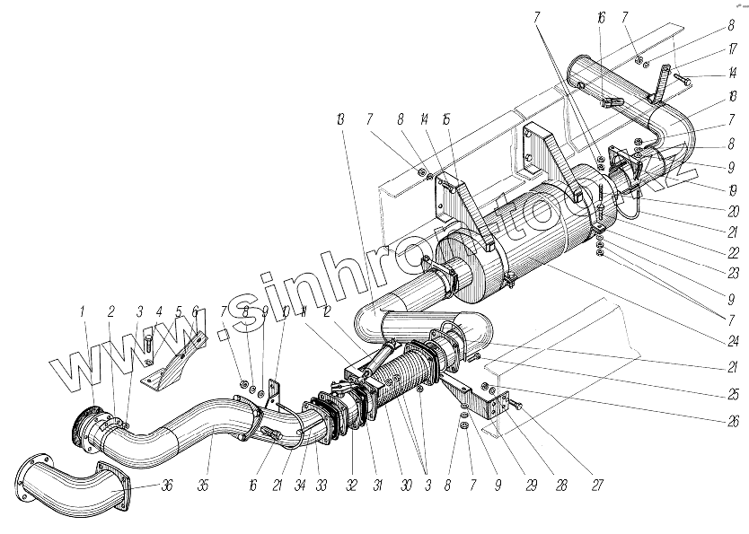 Каталог запасных частей к технике: УралАЗ УРАЛ-532361. Система выпуска газов
