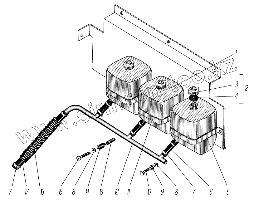 Каталог запасных частей к технике: УралАЗ УРАЛ-532361. Установка расширительного бачка