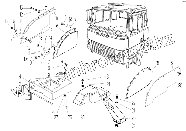 Каталог запасных частей к технике: УралАЗ УРАЛ-532361. Установка шумоизоляции и накладки мотоотсека