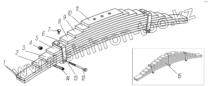 Каталог запасных частей к технике: УралАЗ УРАЛ-532361. Задняя рессора 4320Х-2912012