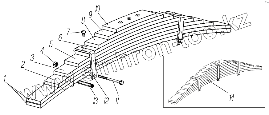 Каталог запасных частей к технике: УралАЗ УРАЛ-532361. Задняя рессора 55571Х-2912012