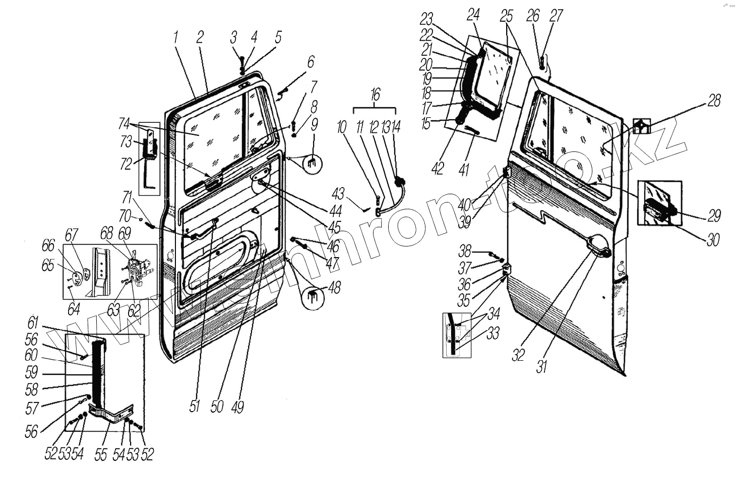 Каталог запасных частей к технике: УралАЗ УРАЛ-55571-1121-70. Двери кабины
