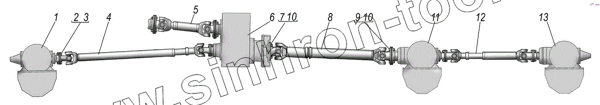 Каталог запасных частей к технике: УралАЗ УРАЛ-55571-1121-70. Карданная передача на шасси