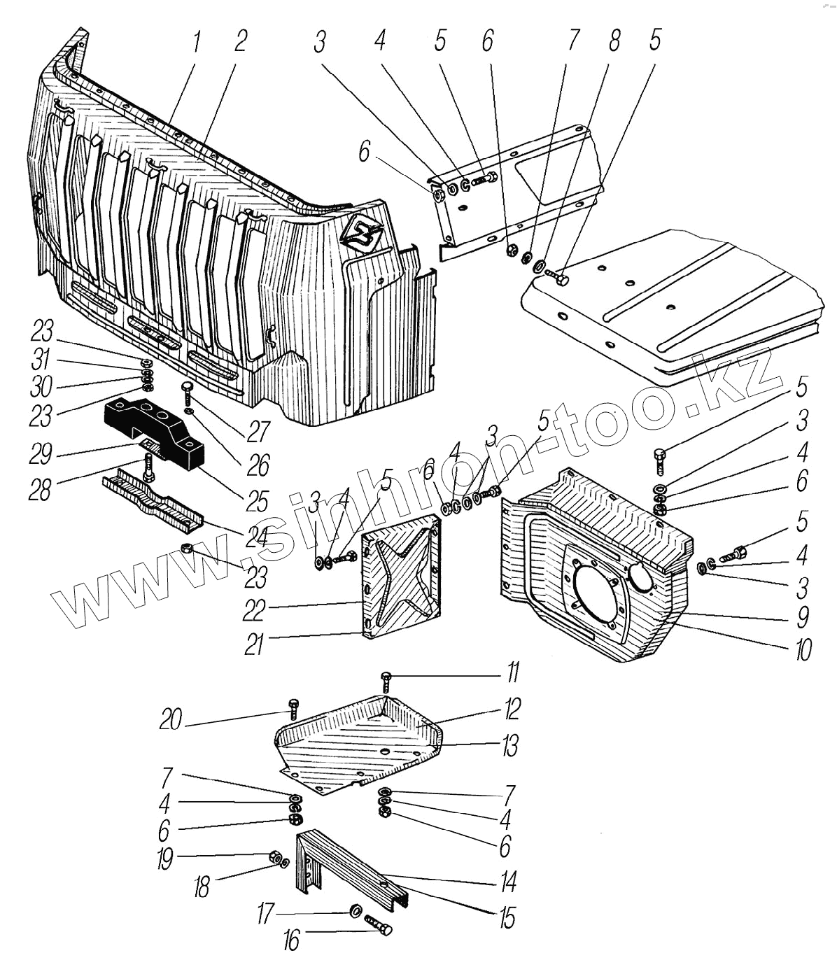 Каталог запасных частей к технике: УралАЗ УРАЛ-55571-1121-70. Облицовка радиатора