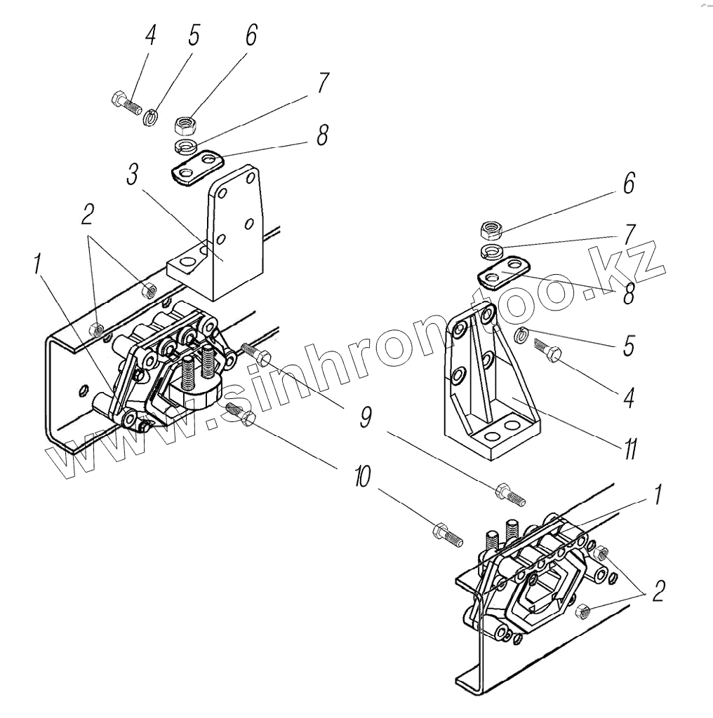 Крепление трубопроводов и шлангов пневмогидравлического привода рабочих тормозов
