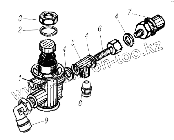 Каталог запасных частей к технике: УралАЗ УРАЛ-55571-1121-70. Установка крана дополнительного торможения