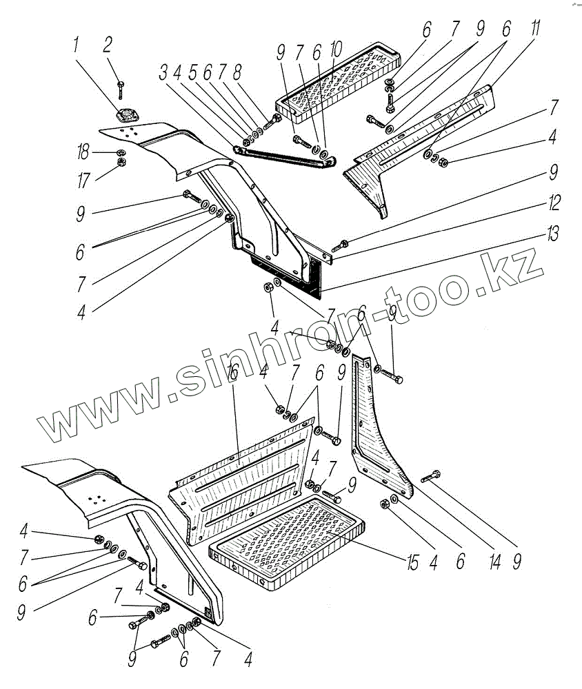 Каталог запасных частей к технике: УралАЗ УРАЛ-55571-1121-70. Установка правой и левой подножек