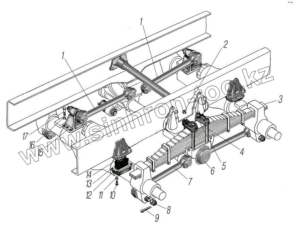 Каталог запасных частей к технике: УралАЗ УРАЛ-55571-1121-70. Задняя подвеска