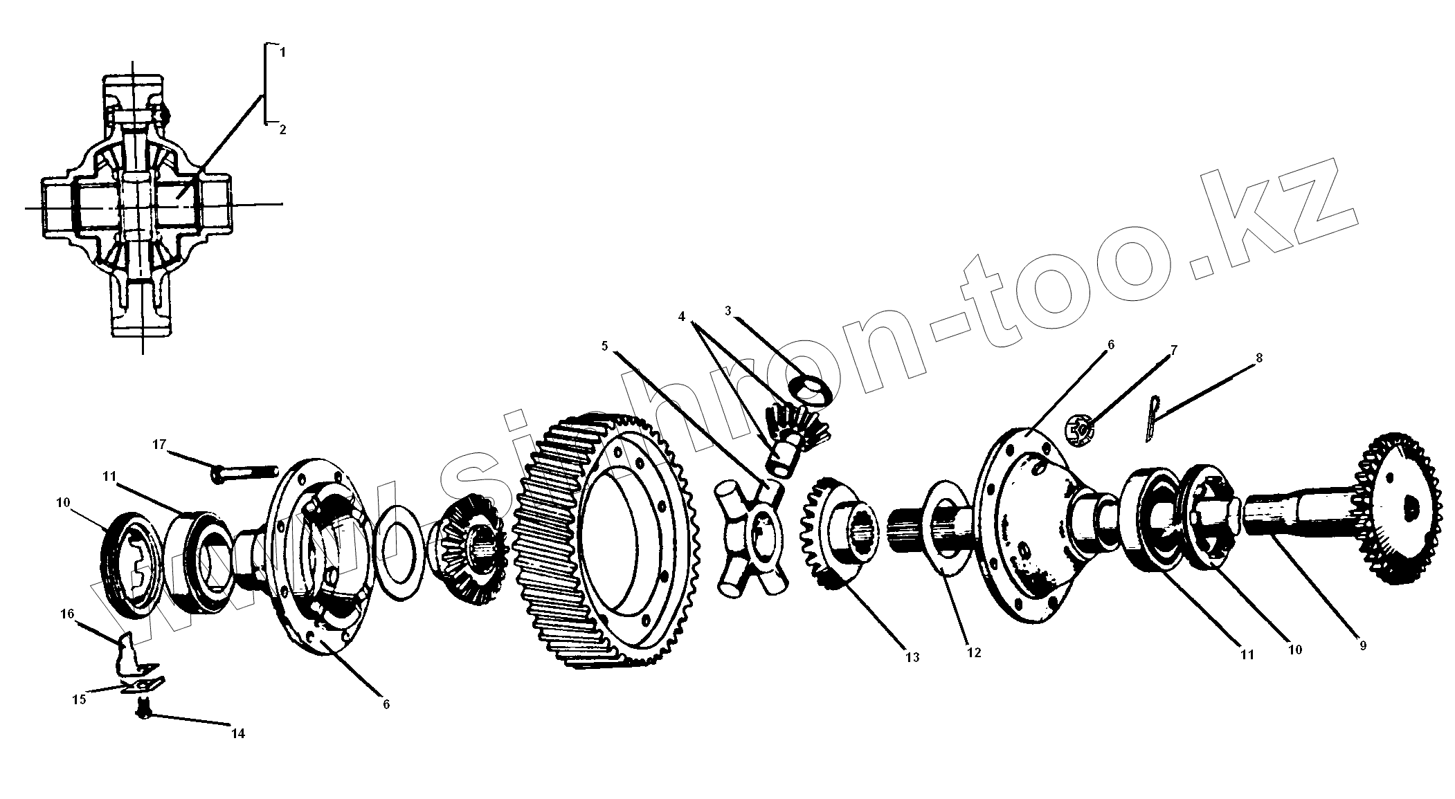Каталог запасных частей к технике: УралАЗ УРАЛ-55571-30. Дифференциал и полуось