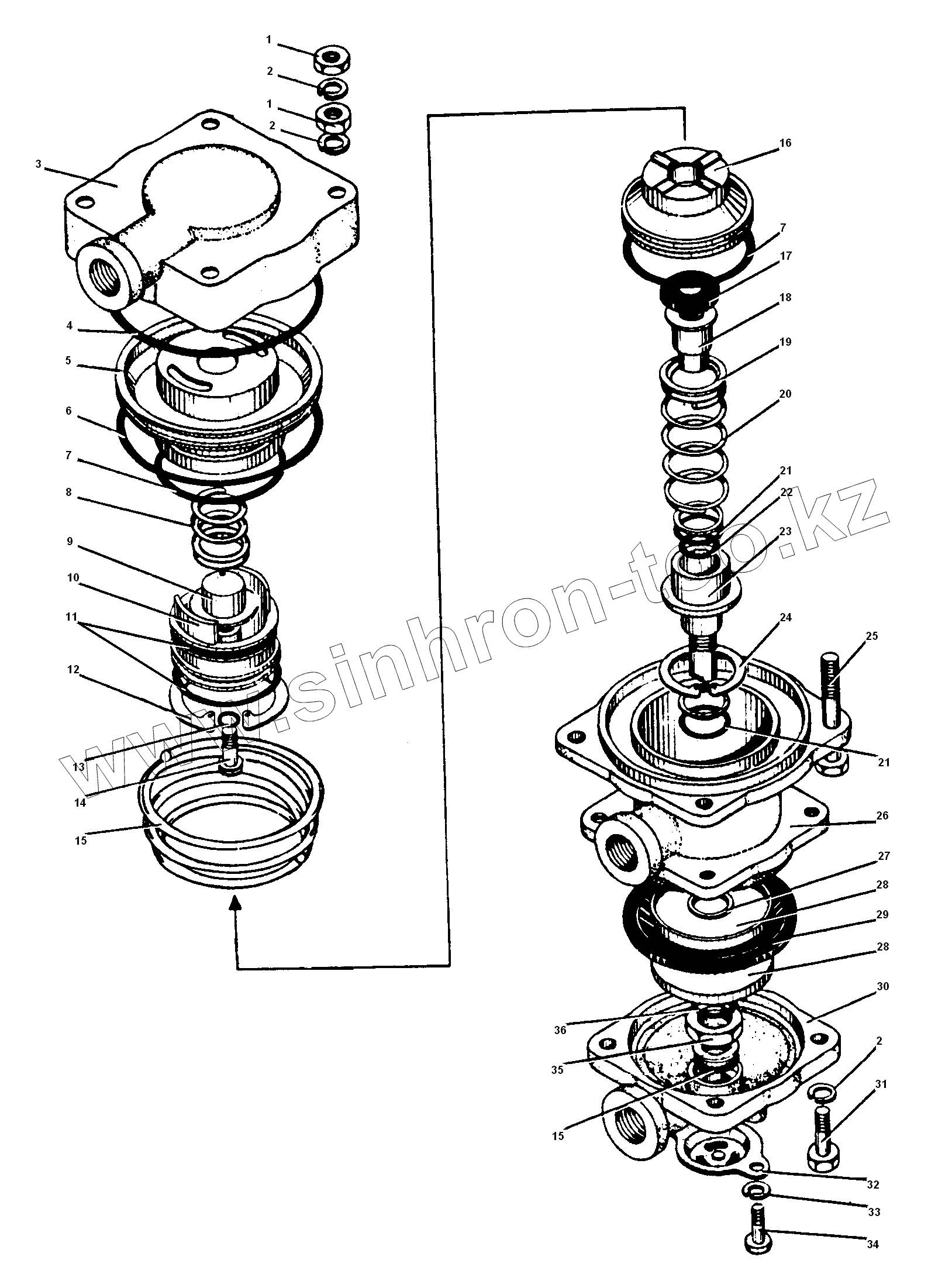 Каталог запасных частей к технике: УралАЗ УРАЛ-55571-30. Клапан управления тормозами прицепа