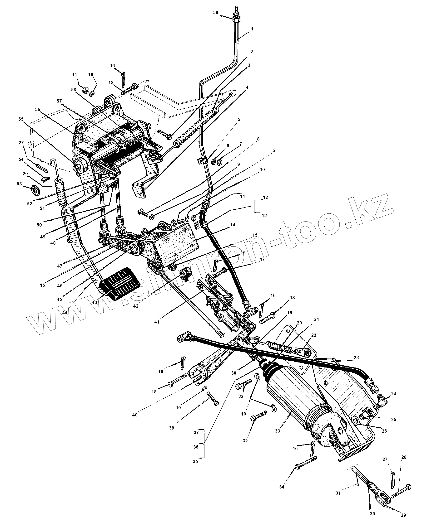 Каталог запасных частей к технике: УралАЗ УРАЛ-55571-30. Привод педалей сцепления и тормоза