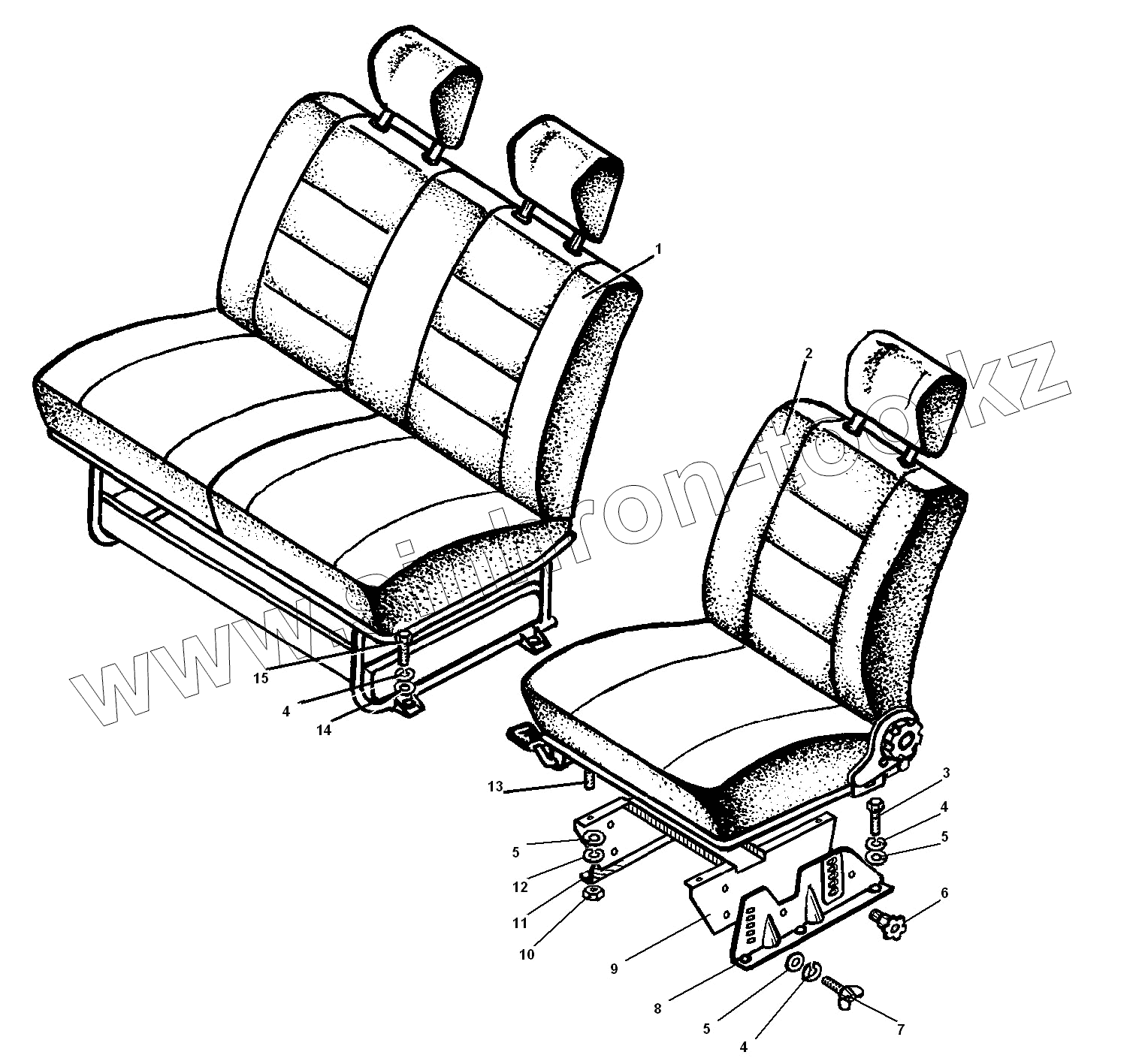 Каталог запасных частей к технике: УралАЗ УРАЛ-55571-30. Сиденья водителя и пассажиров исполнение 2