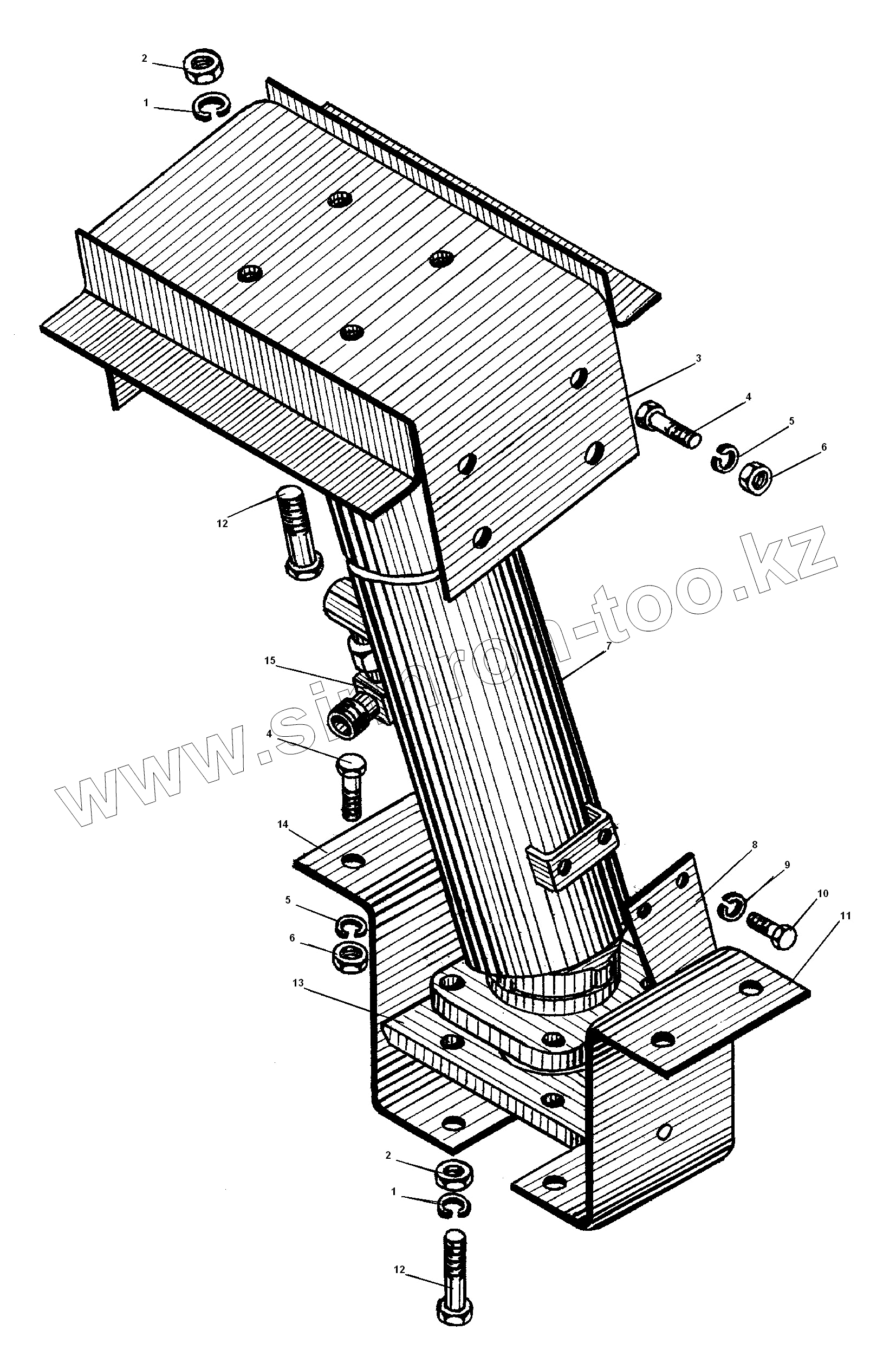 Каталог запасных частей к технике: УралАЗ УРАЛ-55571-30. Установка гидроцилиндра подъема платформы