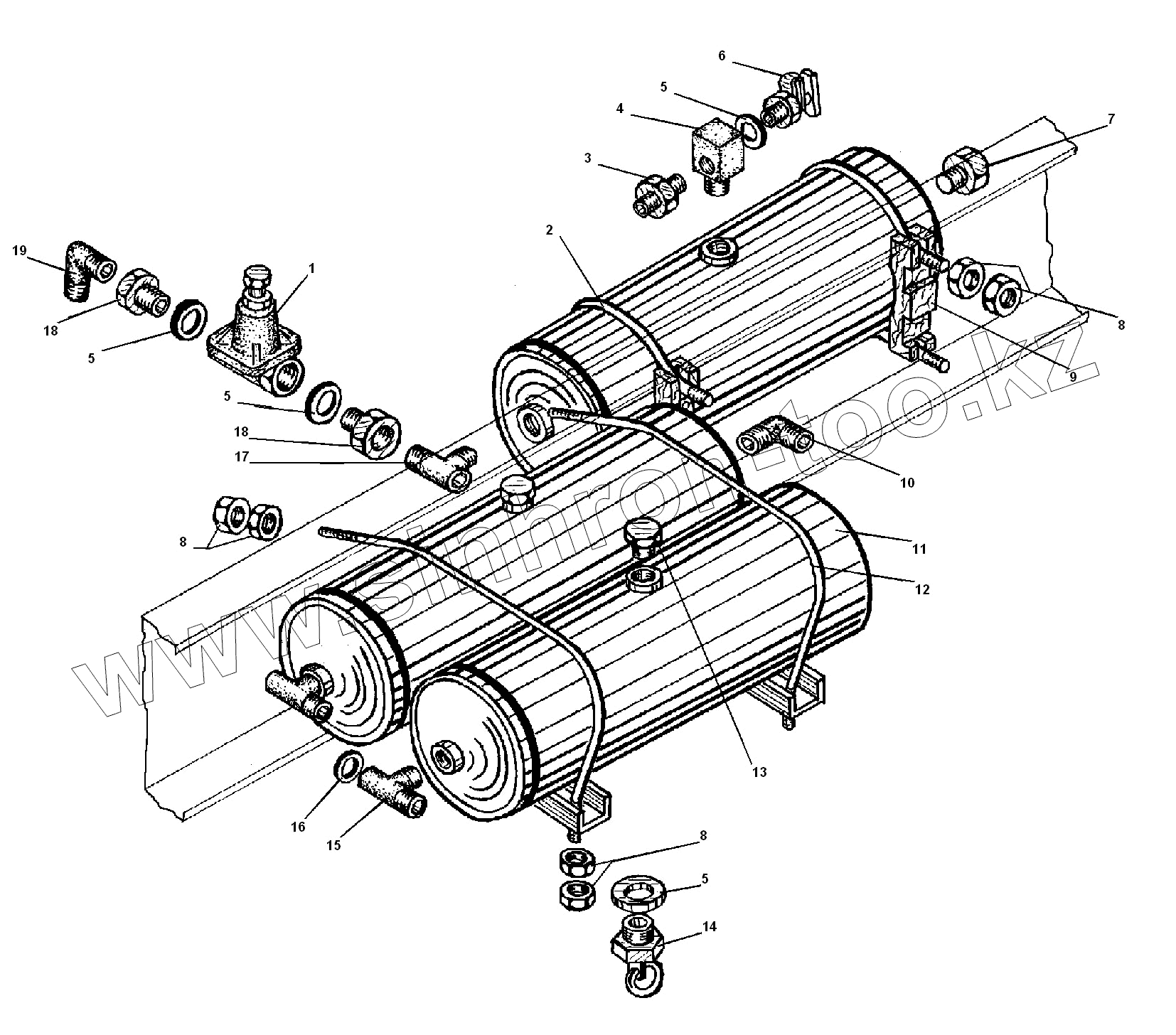 Каталог запасных частей к технике: УралАЗ УРАЛ-55571-30. Установка воздушных баллонов