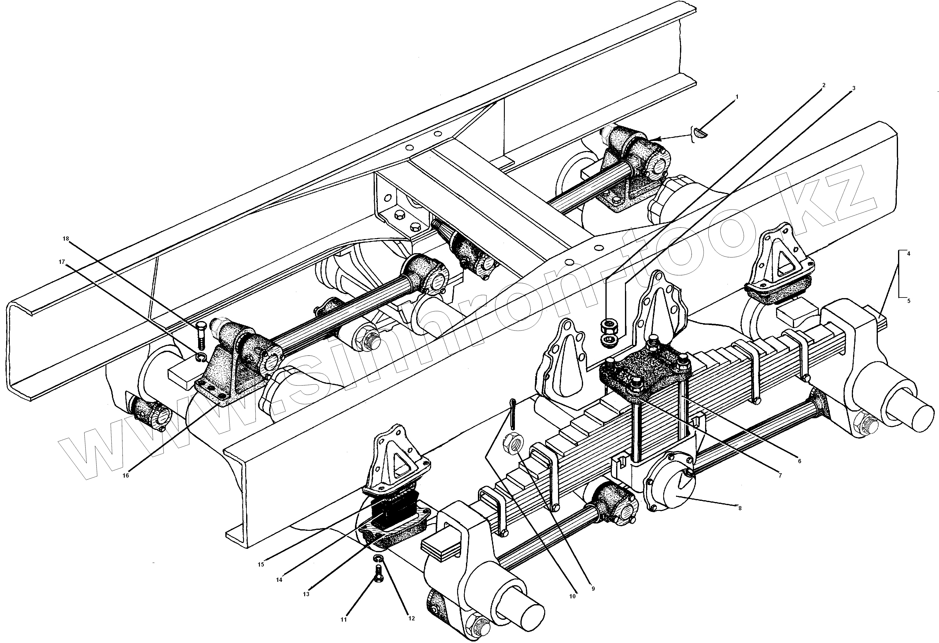Каталог запасных частей к технике: УралАЗ УРАЛ-55571-30. Задняя балансирная подвеска