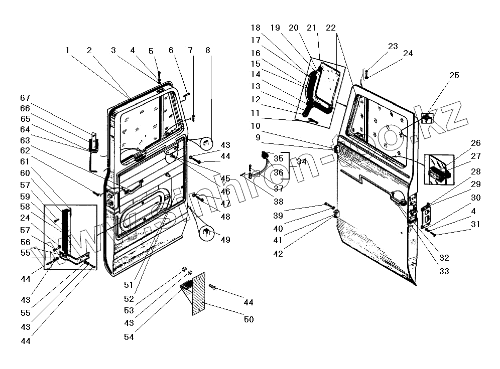 Каталог запасных частей к технике: УралАЗ УРАЛ-55571-40. Двери кабины