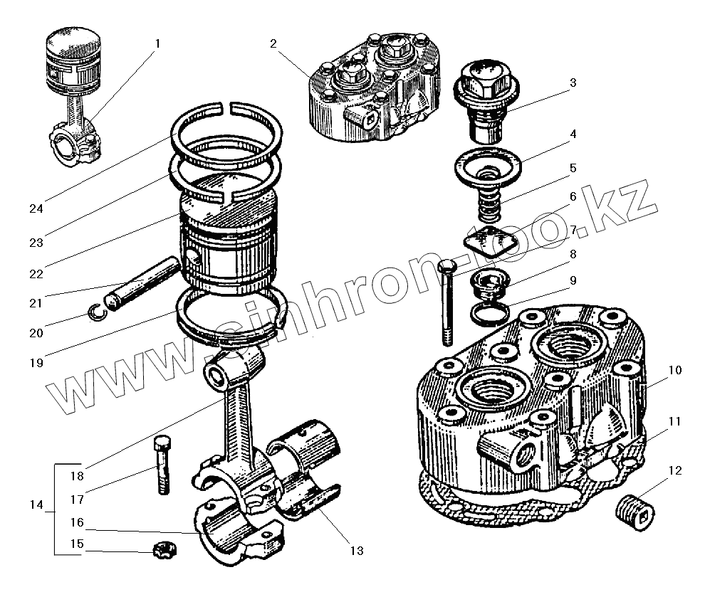 Каталог запасных частей к технике: УралАЗ УРАЛ-55571-40. Головка и поршень компрессора