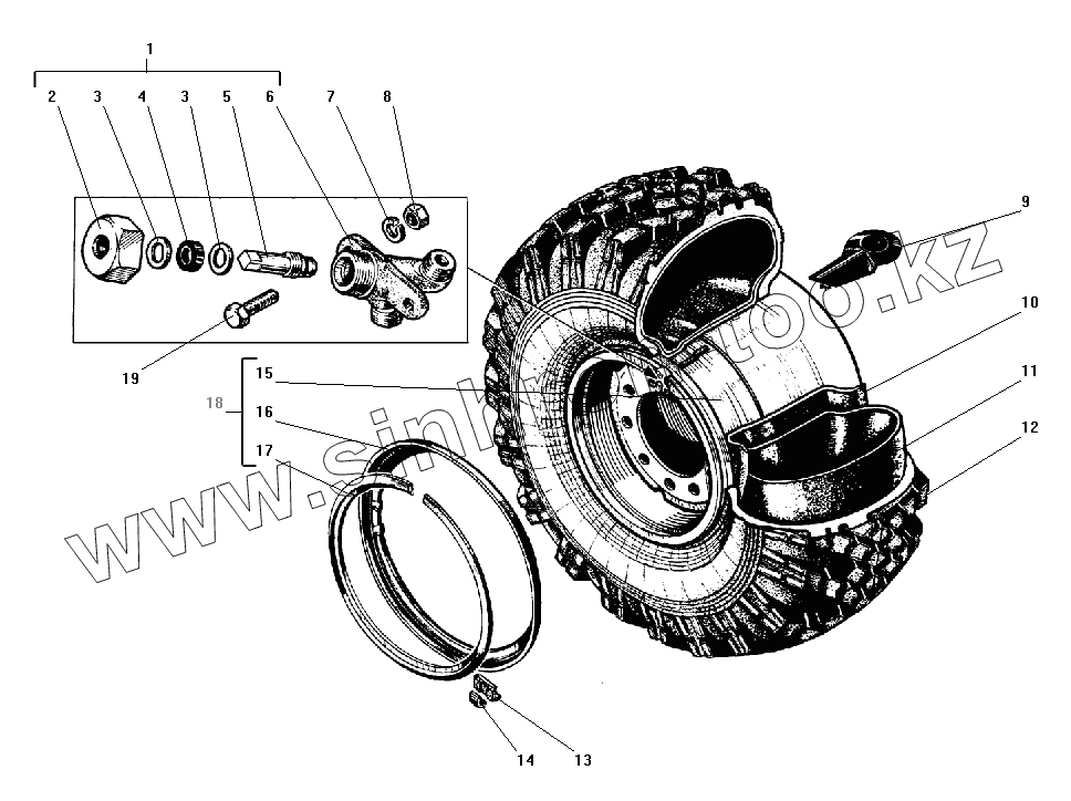 Каталог запасных частей к технике: УралАЗ УРАЛ-55571-40. Колесо и шина