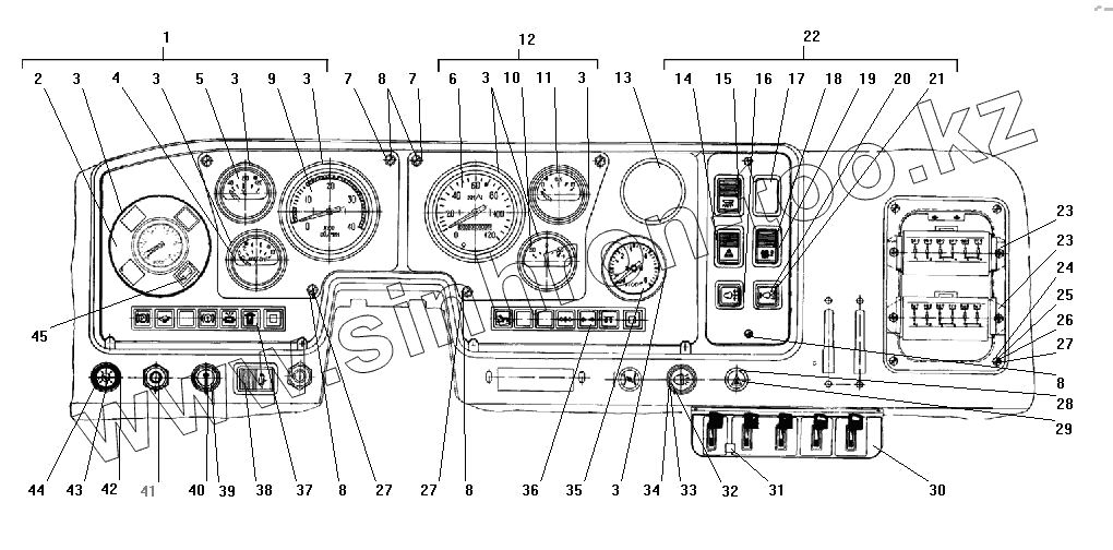 Каталог запасных частей к технике: УралАЗ УРАЛ-55571-40. Панель приборов