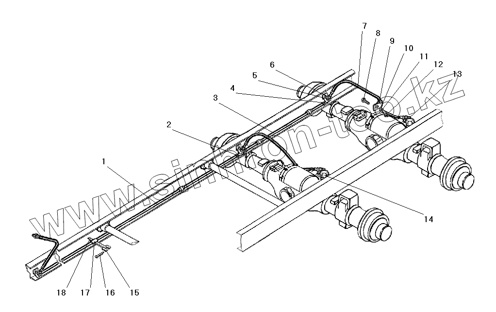 Трубопроводы и шланги гидропневматического привода рабочих тормозов без АБС