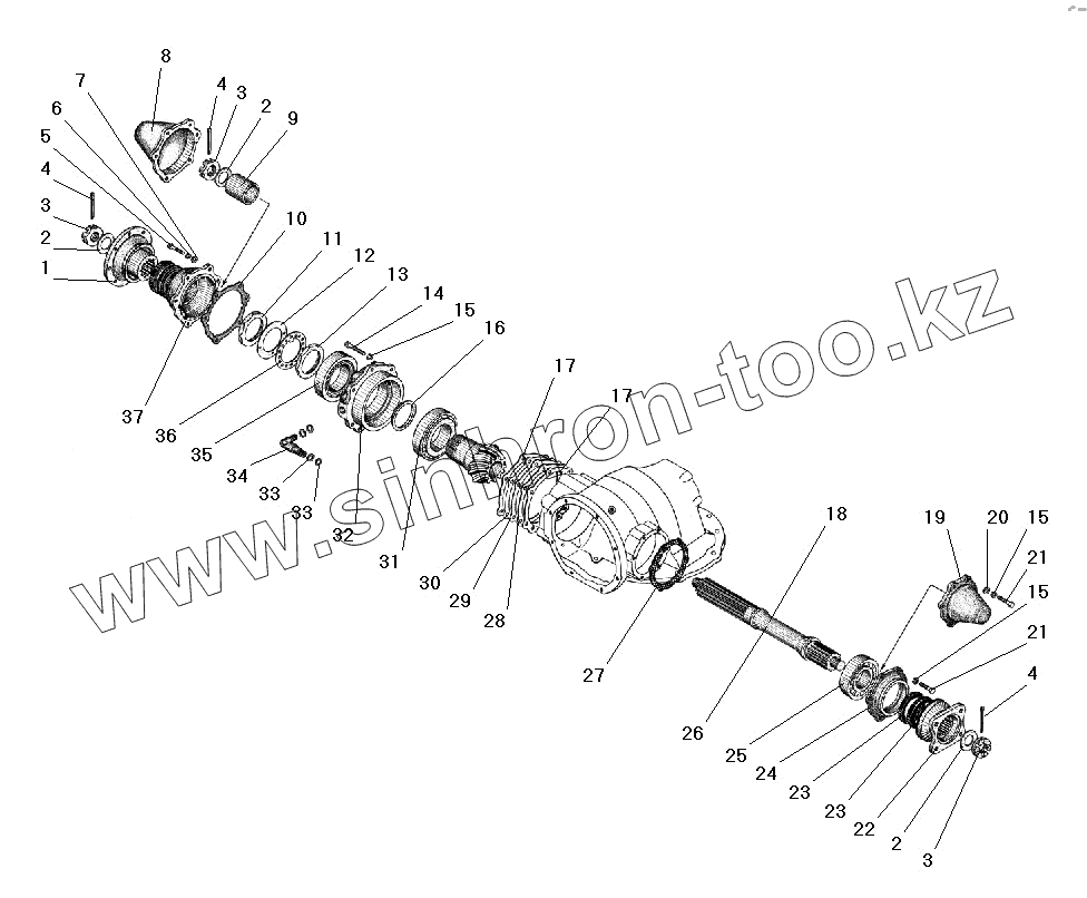 Каталог запасных частей к технике: УралАЗ УРАЛ-55571-40. Проходной вал редуктора главной передачи