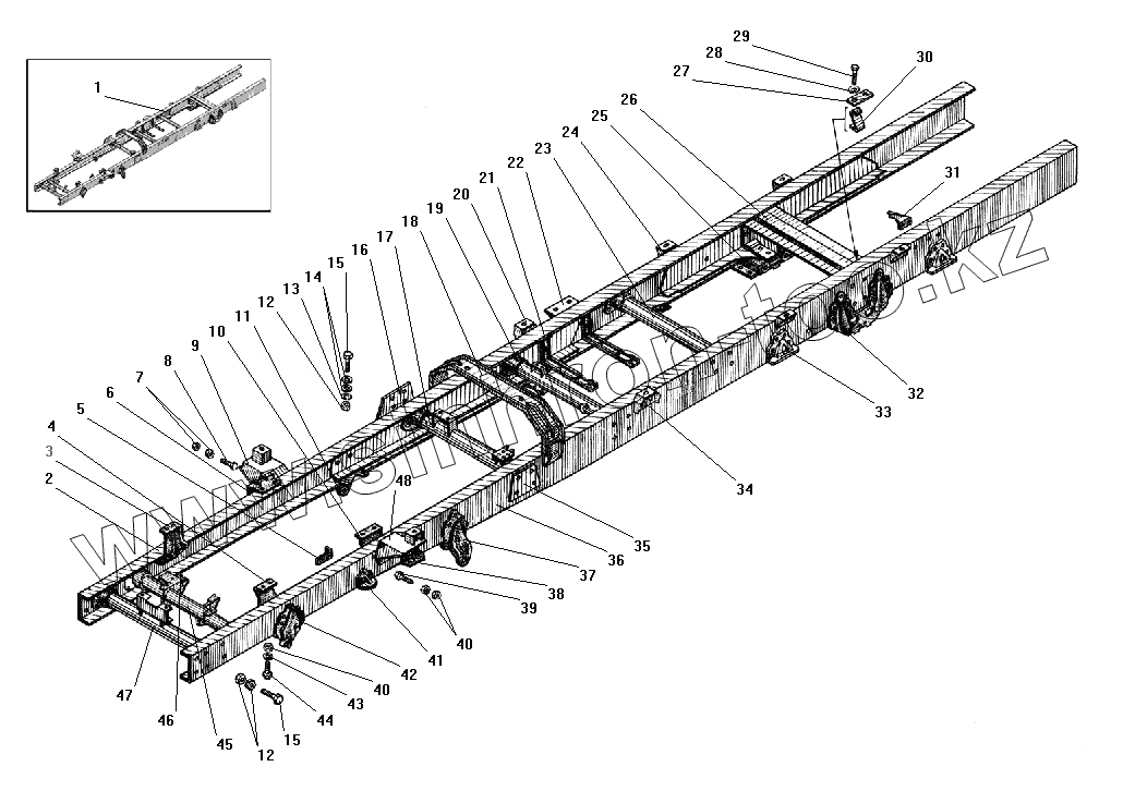 Каталог запасных частей к технике: УралАЗ УРАЛ-55571-40. Рама автомобиля