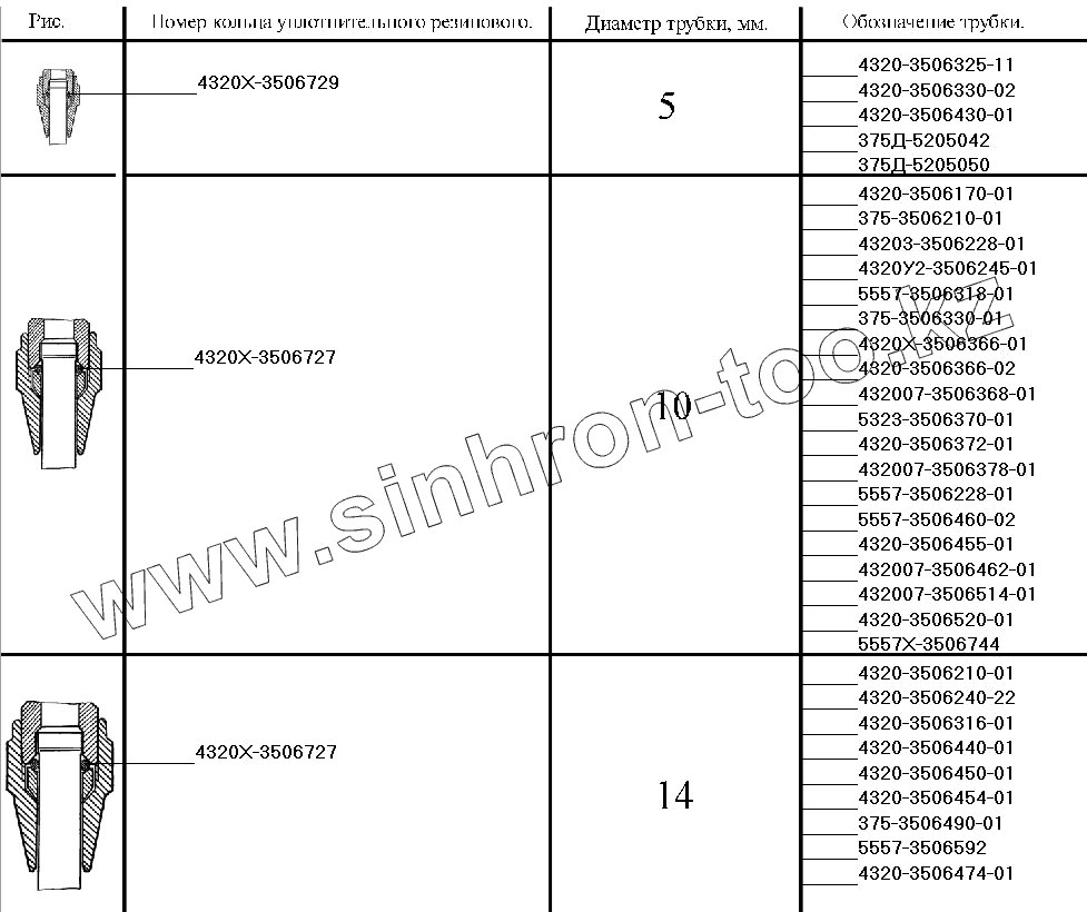 | 4320Х-3506729 | 4320Х-3506729 | Кольцо уплотнительное резиновое | |