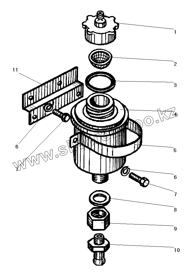 Каталог запасных частей к технике: УралАЗ УРАЛ-55571-40. Установка бачка привода сцепления