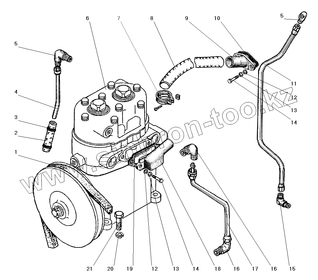 Каталог запасных частей к технике: УралАЗ УРАЛ-55571-40. Установка компрессора