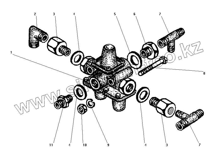 Каталог запасных частей к технике: УралАЗ УРАЛ-55571-40. Установка тройного защитного клапана