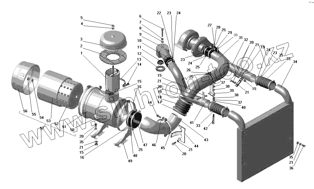 Каталог запасных частей к технике: УралАЗ УРАЛ-55571-40. Воздухопровод с воздушным фильтром