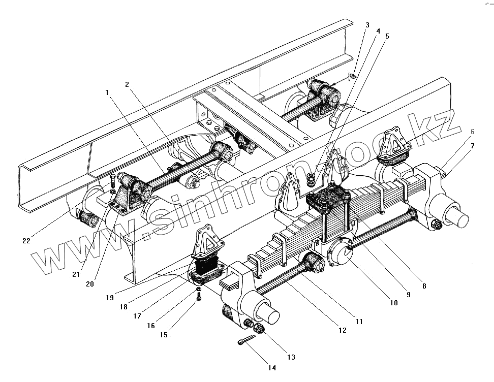 Каталог запасных частей к технике: УралАЗ УРАЛ-55571-40. Задняя балансирная подвеска