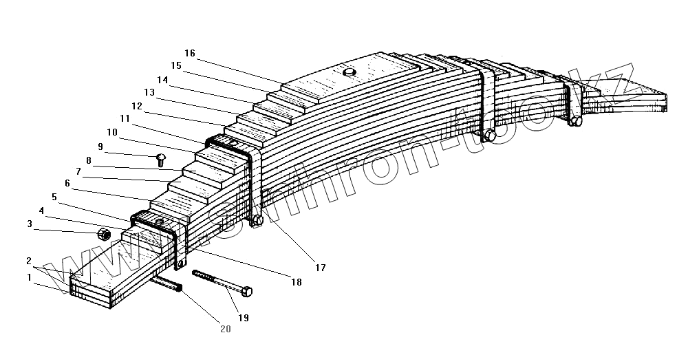Каталог запасных частей к технике: УралАЗ УРАЛ-55571-40. Задняя рессора