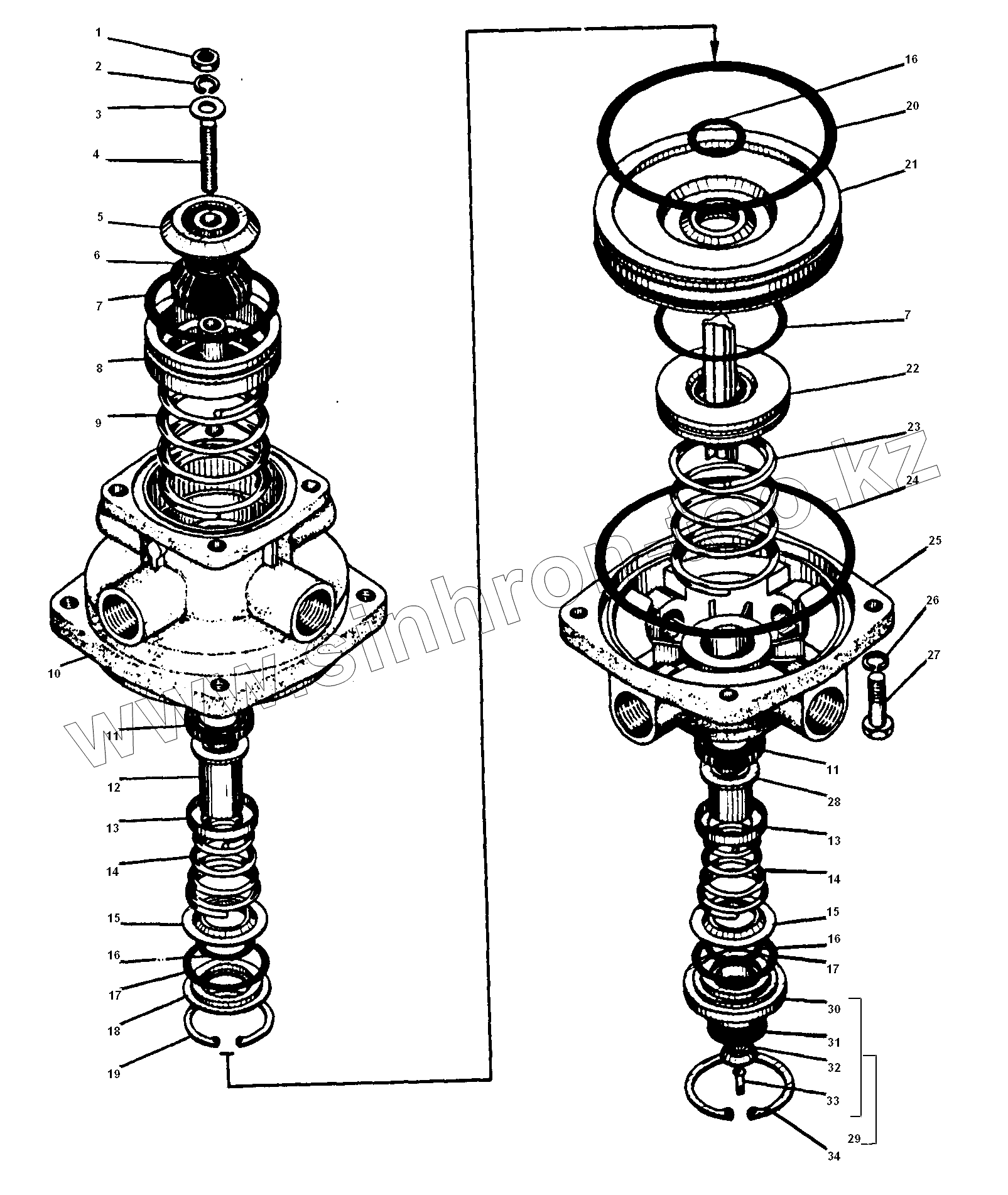 Каталог запасных частей к технике: УралАЗ УРАЛ-5557-31. Детали тормозного двухсекционного крана