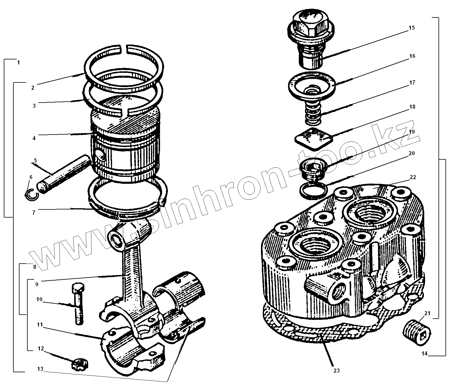 Каталог запасных частей к технике: УралАЗ УРАЛ-5557-31. Головка и поршень компрессора