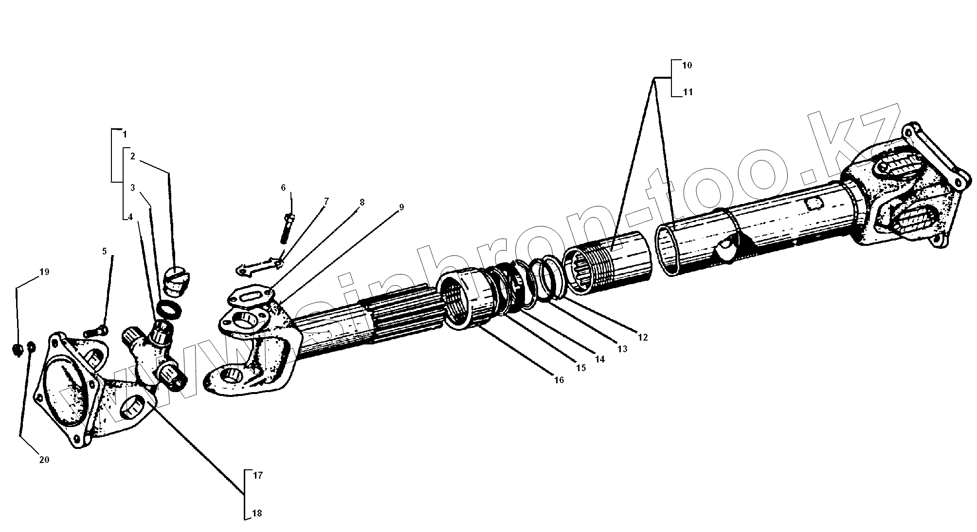 Каталог запасных частей к технике: УралАЗ УРАЛ-5557-31. Карданный вал заднего (переднего) моста
