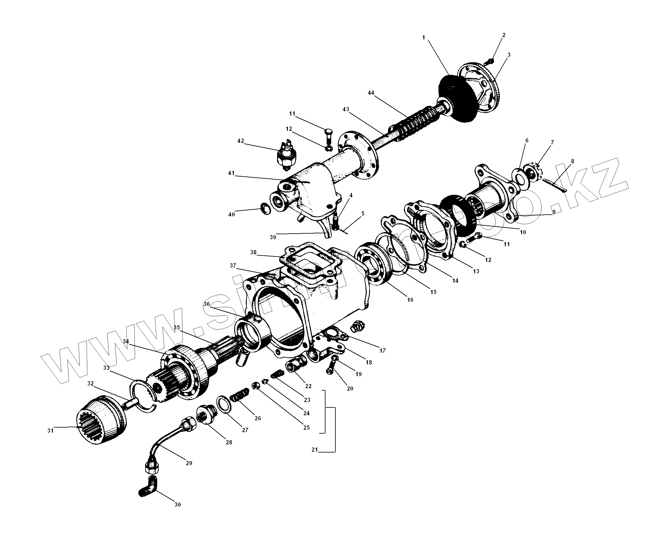 Каталог запасных частей к технике: УралАЗ УРАЛ-5557-31. Коробка дополнительного отбора мощности