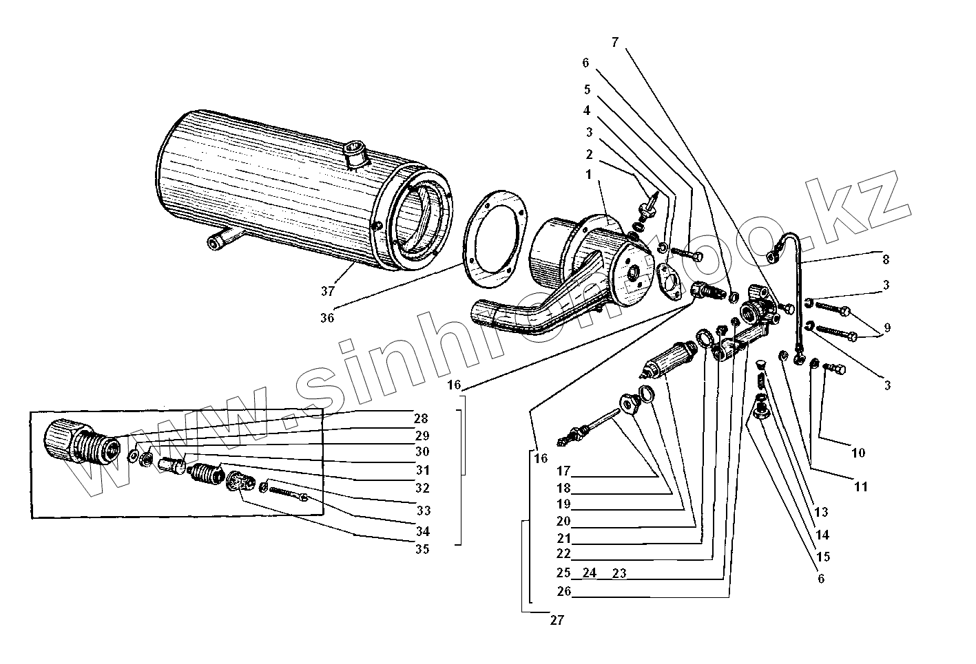 Каталог запасных частей к технике: УралАЗ УРАЛ-5557-31. Котел (теплообменник) предпускового подогревателя