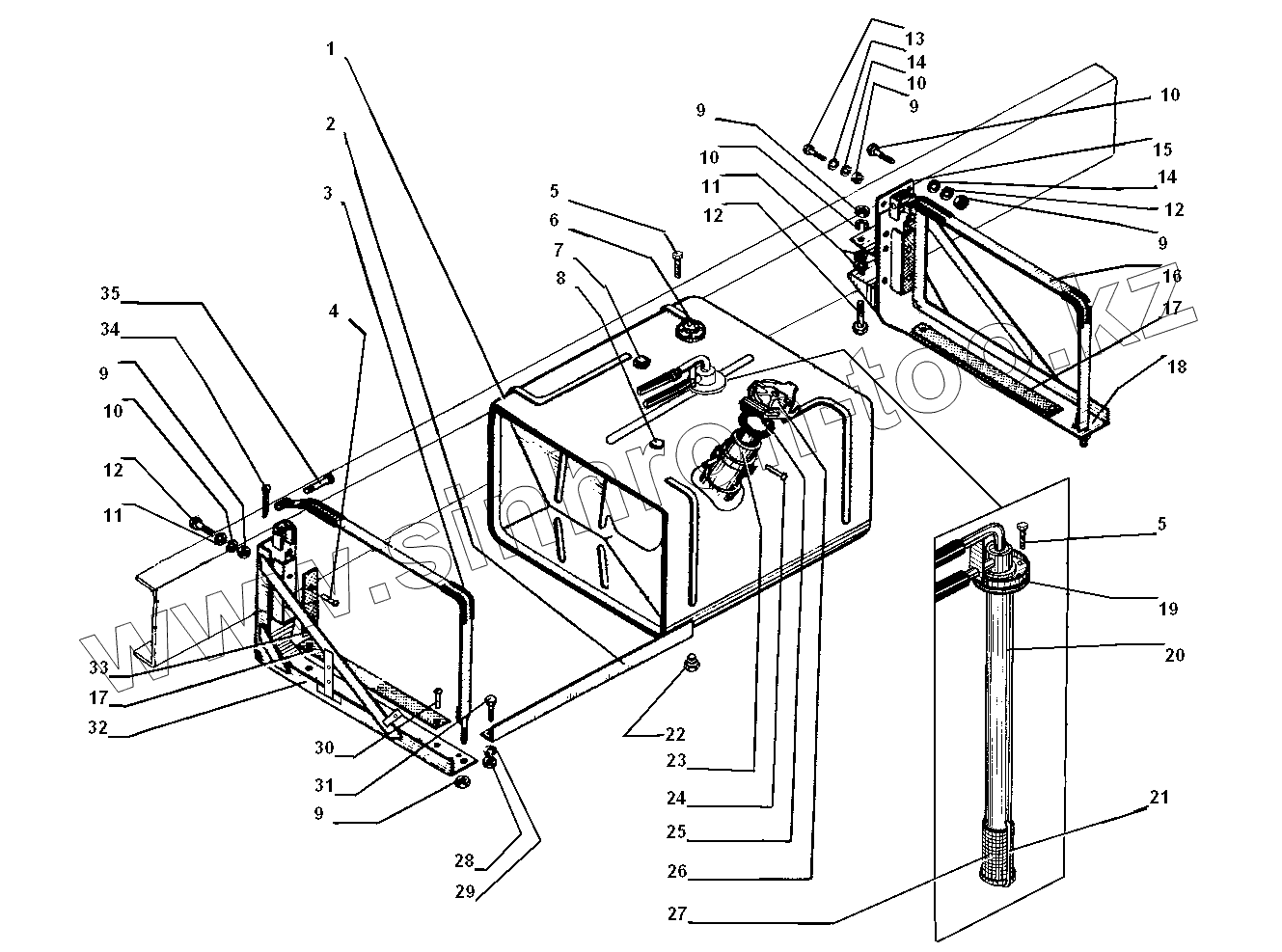 Каталог запасных частей к технике: УралАЗ УРАЛ-5557-31. Основной топливный бак