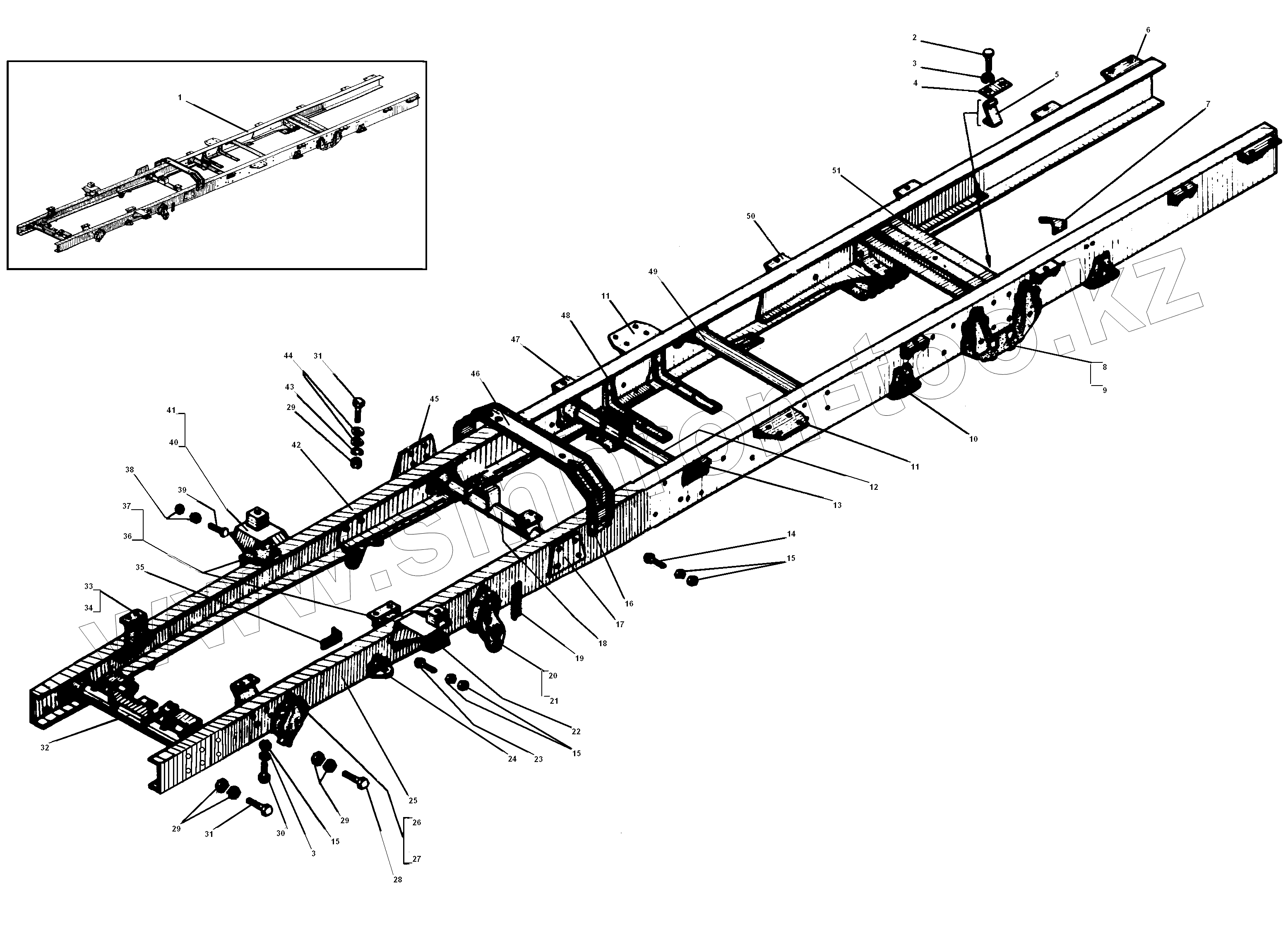 Каталог запасных частей к технике: УралАЗ УРАЛ-5557-31. Рама